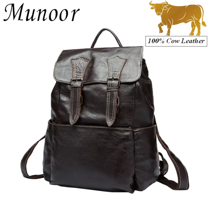 Munoor Original 100 Genuine Cow Leather Backpack Men Large Capacity Travel Bag Office Shoulder Bag Men School Bag Beg Sandang Lelaki Beg Galas Beg Sekolah Lazada